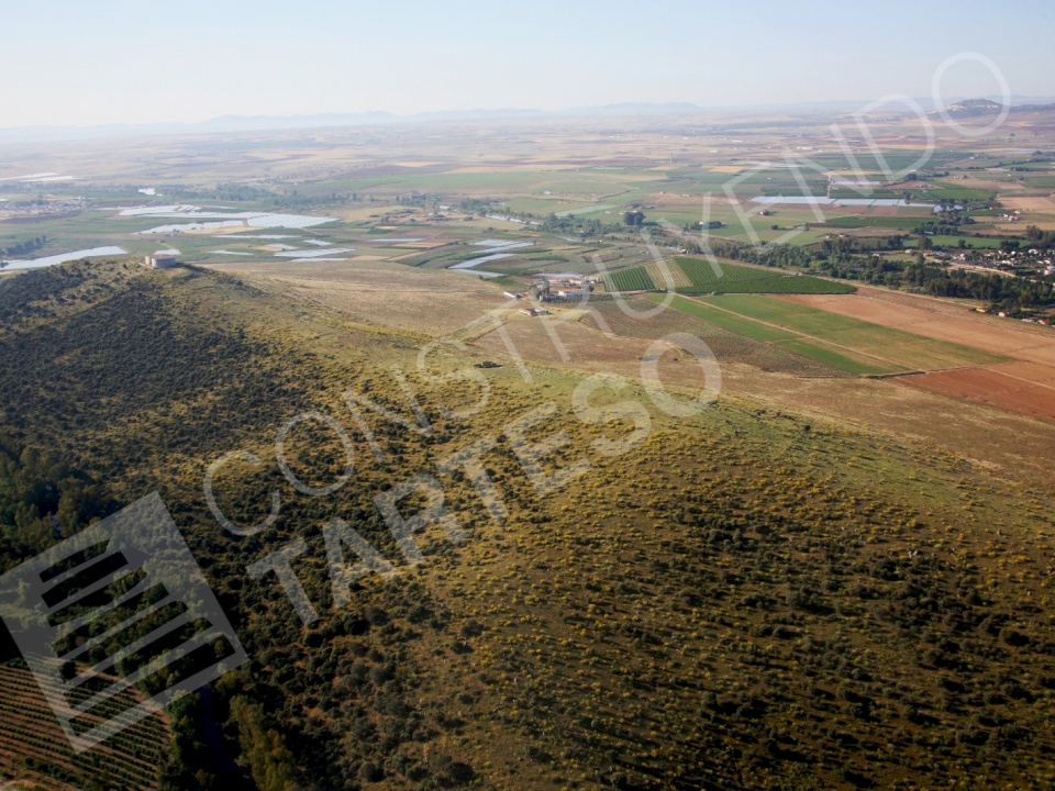 Vista aérea del yacimiento del Tamborrio ( Villanueva de la Serena, Badajoz)