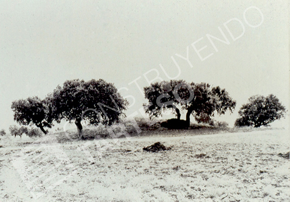 Vista general del túmulo del yacimiento de Casas del Turuñuelo (Guareña, Badajoz)