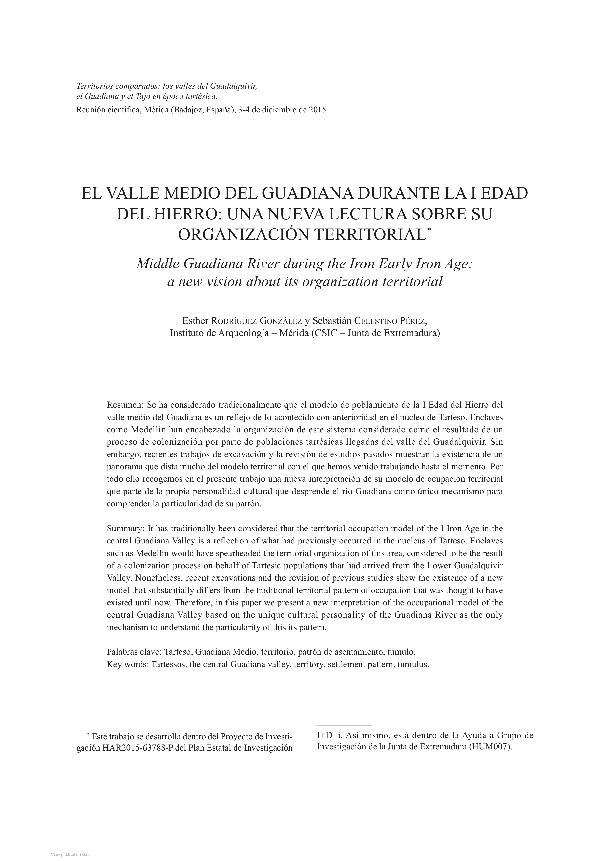 El valle medio del Guadiana durante la I Edad del Hierro: una nueva lectura sobre su organización territorial